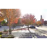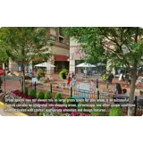 The following images are examples of pathways and public spaces that may be appropriate in mixed use areas. These are organized by interconnected nodes and links. Nodes are often places of respite or of focal activity, and activated with amenities that usually include constructed hardscape or play elements. Links are features such as pathways or linear spaces connecting nodes, usually visibly, and in a meaningful and interrelated context.
